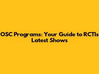 Decoding the Latest OSC Programs on RCTI: A Sneak Peek