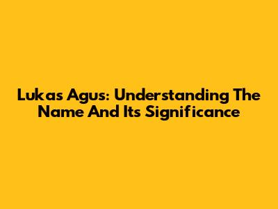 Lukas Agus: Understanding The Name And Its Significance