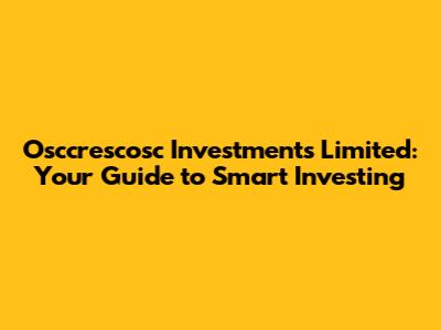 Are you looking to dive into the world of investments but feel a bit lost? Guys, you're not alone! Investing can seem daunting, but with the right guidance, it can be a powerful tool for building your financial future. This article is all about Osccrescosc Investments Limited, and while there might not be a ton of publicly available information about them specifically, we can use this as a springboard to discuss smart investment strategies, understanding risk, and making informed decisions. So, let's get started and unlock the secrets to successful investing!