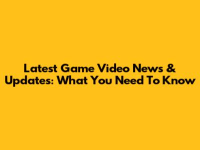 Latest Game Video News & Updates: What You Need To Know