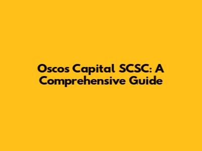 Oscos Capital SCSC: A Comprehensive Guide