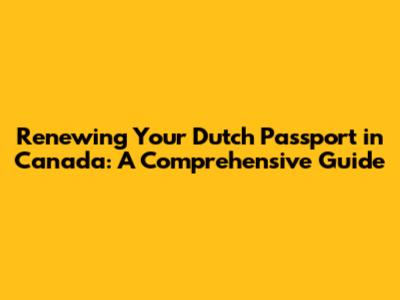 Eligibility Requirements: Can You Renew Your Dutch Passport in Canada?