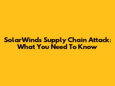 SolarWinds Supply Chain Attack: What You Need To Know