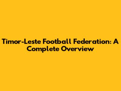 Timor-Leste Football Federation: A Complete Overview