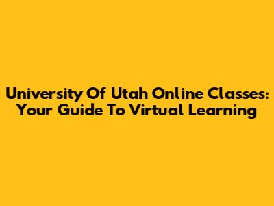 University Of Utah Online Classes: Your Guide To Virtual Learning