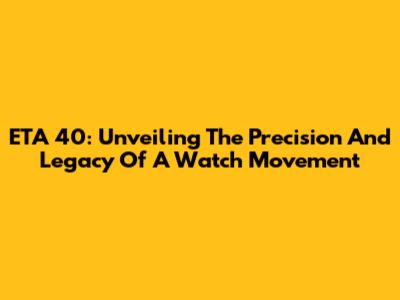 ETA 40: Unveiling The Precision And Legacy Of A Watch Movement