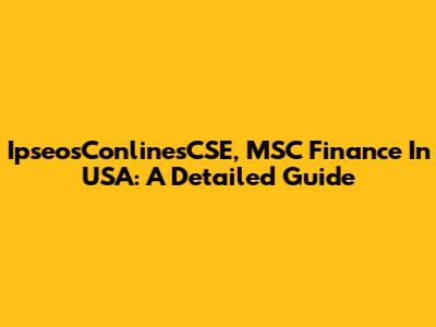 IpseosConlinesCSE, MSC Finance In USA: A Detailed Guide