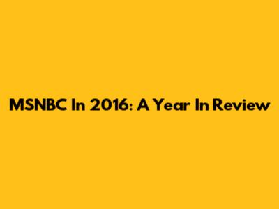 MSNBC In 2016: A Year In Review
