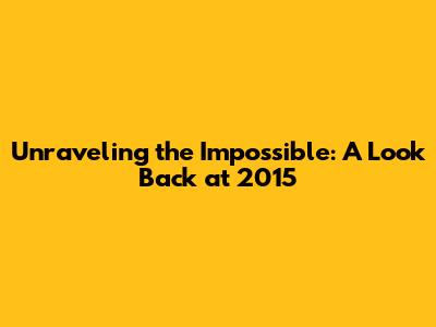 Hey guys! Let's take a trip down memory lane and revisit 2015. It's a year that, looking back, felt pretty impossible at times, right? Remember all the buzz, the breakthroughs, and the head-scratching moments? This article is going to be a deep dive, exploring some of the most memorable events and trends that shaped that year. We'll touch on everything from tech innovations and political shifts to cultural phenomenons that had everyone talking. So, buckle up, grab your favorite snack, and get ready for a rewind! We'll explore the 'impossible' moments of 2015, highlighting the advancements and challenges that defined the year. It's going to be a fun ride, trust me! This rewind will give you a fresh perspective on the events that, at the time, seemed absolutely impossible to believe. Let's see what we can remember, shall we?