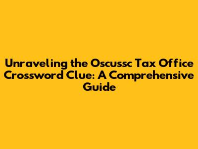 Hey crossword enthusiasts! Ever found yourself staring blankly at a clue, the letters of "OSCUSSC TAX OFFICE" staring back at you like a cryptic puzzle? You're not alone! This seemingly complex clue has tripped up many a solver. But fear not, because we're about to dive deep into the world of crossword clues, breaking down the "OSCUSSC TAX OFFICE" conundrum step by step. We'll explore potential answers, strategies for solving, and even some fun facts about the tax office itself. Get ready to flex those brain muscles and conquer that crossword!