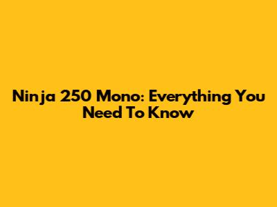Ninja 250 Mono: Everything You Need To Know
