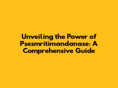 What Exactly is Psesmritimandanase, Anyway?