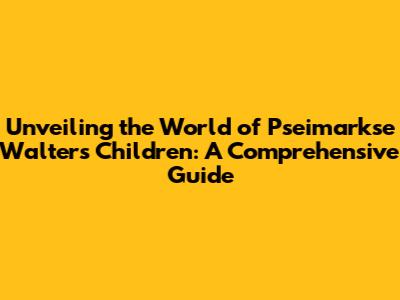 Hey guys! Ever heard of Pseimarkse Walter and their children? If not, you're in for a treat! This guide is all about diving deep into their lives, exploring their world, and understanding the impact they've made. We'll be covering everything from their backgrounds and achievements to the unique challenges they've faced. Ready to get started? Let's go!