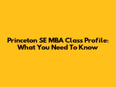 Princeton SE MBA Class Profile: What You Need To Know
