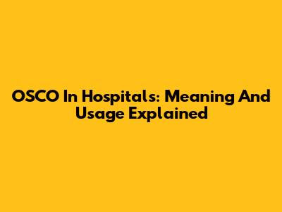 OSCO In Hospitals: Meaning And Usage Explained