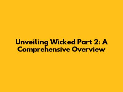 Unveiling Wicked Part 2: A Comprehensive Overview