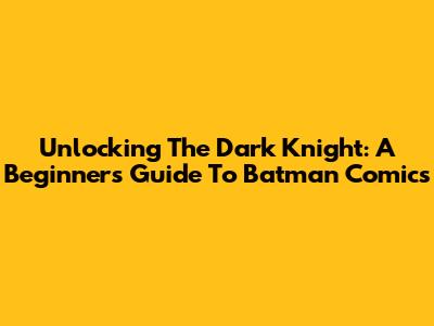 Unlocking The Dark Knight: A Beginner's Guide To Batman Comics