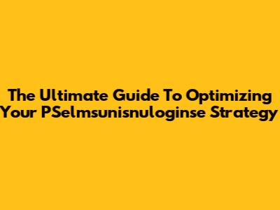 The Ultimate Guide To Optimizing Your PSelmsunisnuloginse Strategy