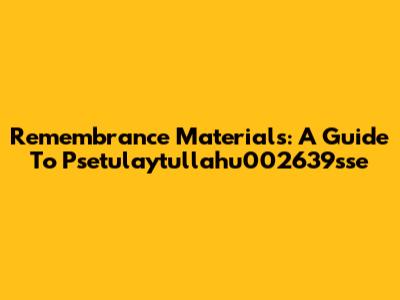 Remembrance Materials: A Guide To Psetulaytullahu002639sse