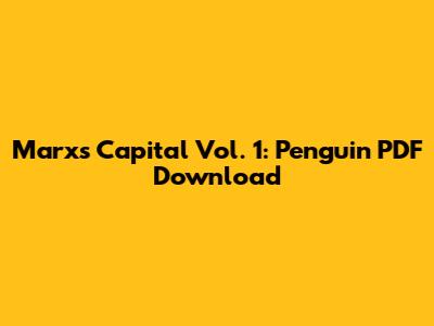 Marx's Capital Vol. 1: Penguin PDF Download